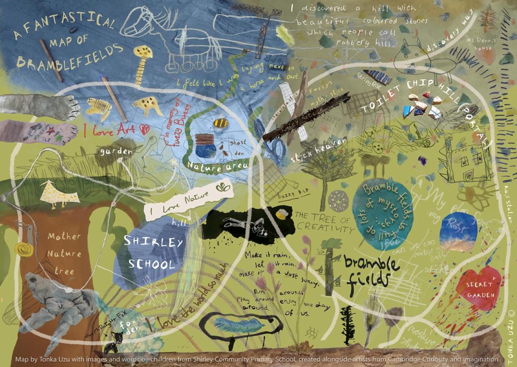 There’s the reimagination of eduction by the Reggio Emilia school model where kids have rights and collaborate with teachers to design their curriculum. The School of the Possible in France and the Green Free School in Copenhagen incorporate gardening, art, stories through project learning. The Plymouth School of Creative Arts in the UK created inside an old department store with the idea of learning through making, has big open floor plans that house a learning kitchen, performance spaces and science labs, totally accessible to the inner city neighborhood it sits in. There are programs within existing schools, like Cambridge Curiosity and Imagination, which designs”ways for people of all ages to develop their own curiosity and imagination by inviting them into playful environments, both indoors and outdoors, and giving them the permission to explore.” In one activity, children explore a particular place and the layers of images, poems and meanings are incorporated into a Fantastical Map(see below). And there’s the idea of “unschooling,” expressed by “Udaipur as a Learning City,” which sees its community as an opportunity to learn. “We find that once we step out of the boundaries of school, we’re no longer, poor, backward, underdeveloped people. We actually have brilliant, abundant resources of learning all around us.”