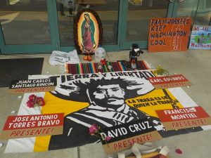 At the L&I gathering a small altar was created to honor and remember Honesto Silva Ibarra who died of heat exposure four years ago in Whatcom County. Others who recently passed from heat exposure, exhaustion and related hazards were also remembered: Juan Carlos Santiago Rincon, Earl Edwards, Francisco Montiel, David Cruz, Jose Antonio Torres Bravo and more…
