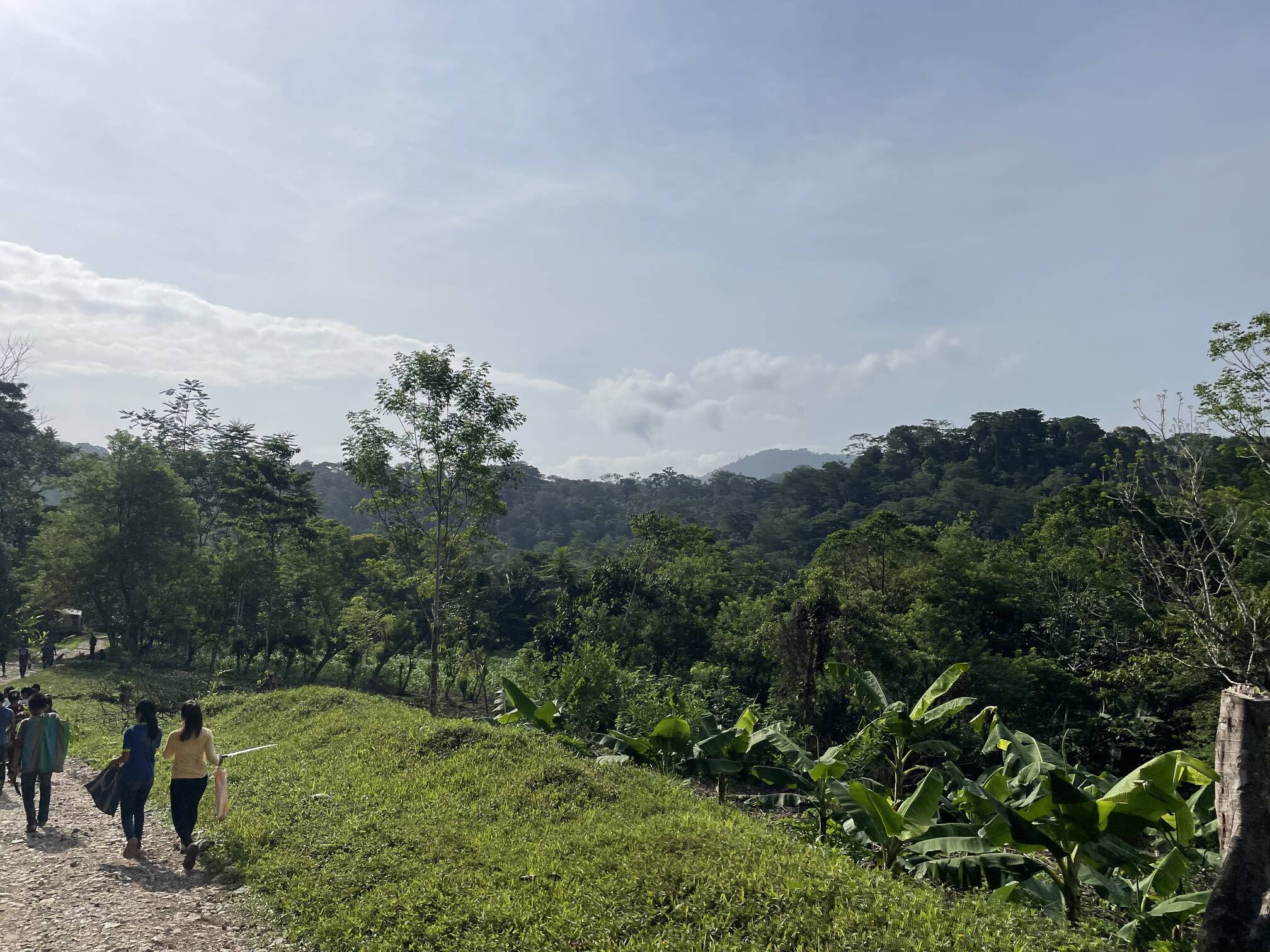 Residents of Copal AA worked together during the festival to plant about 700 trees on this acre of land. Before it was cleared in preparation, it looked like the area to the right there, with low shrubs and the occasional tree. In a few years it will look like the area on the hilltop.