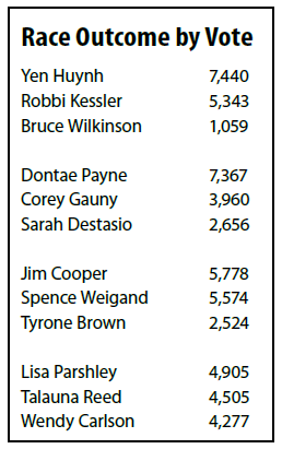 The results for the primary election have become clear. Incumbent Jim Cooper and Spence Weigand will face each other. Incumbent Lisa Parshley will face Talauna Reed. Incumbent Yen Huynh will face Robbi Kesler. In the race for the open seat vacated by Renata Rollins, Dontae Payne will face Corey Gauny.